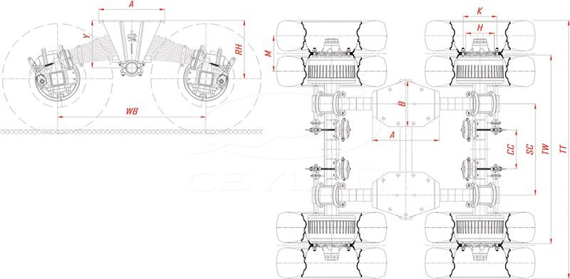 Бугельные оси 2х12 тонн с 10-тью шпильками типа R