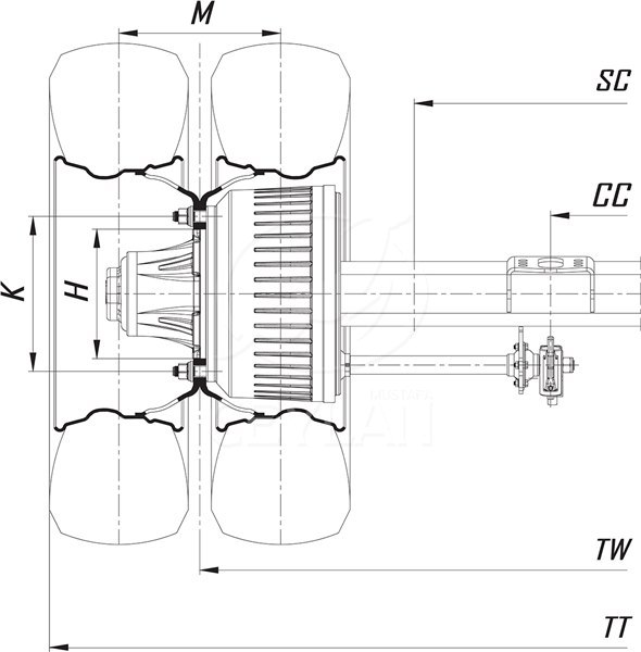 Расстояние по тормозным камерам (mm) CC |
