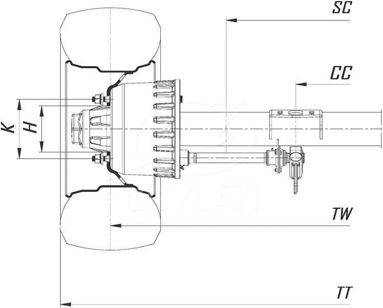 MUSTAFA CEYLAN - Оси 9 Тонн С 10-Тью Шпильками И Одинарными Шинами (Цилиндрическая Балка) - Барабанный тормоз
